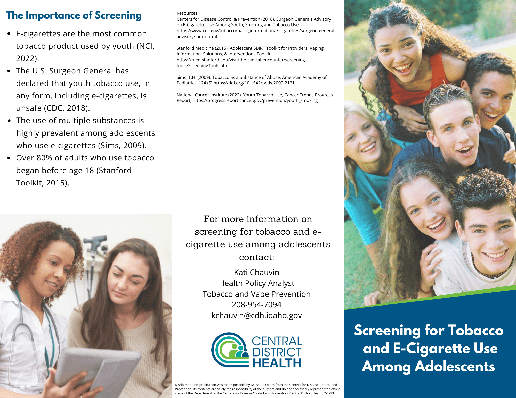 Brochure: Screening for Tobacco and E-Cigarette Use Among Adolescents